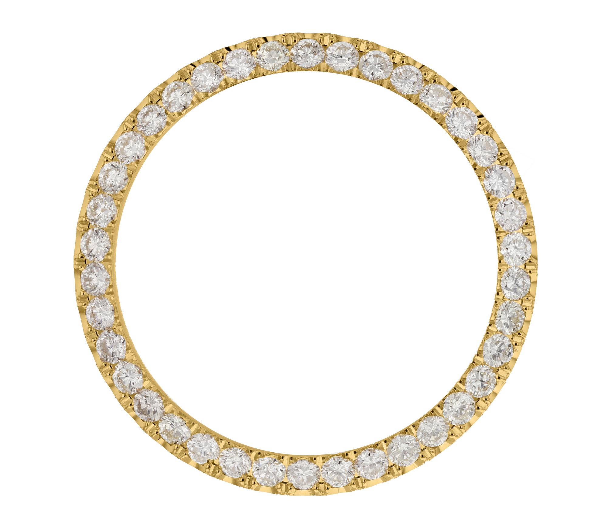 This 40mm custom diamond bezel is crafted from high-quality 14K yellow gold and boasts a stunning 3.7ct diamond. Elevate your style and stand out with this luxurious and eye-catching accessory. Expertly designed and crafted, this bezel is sure to make a statement and elevate any outfit.