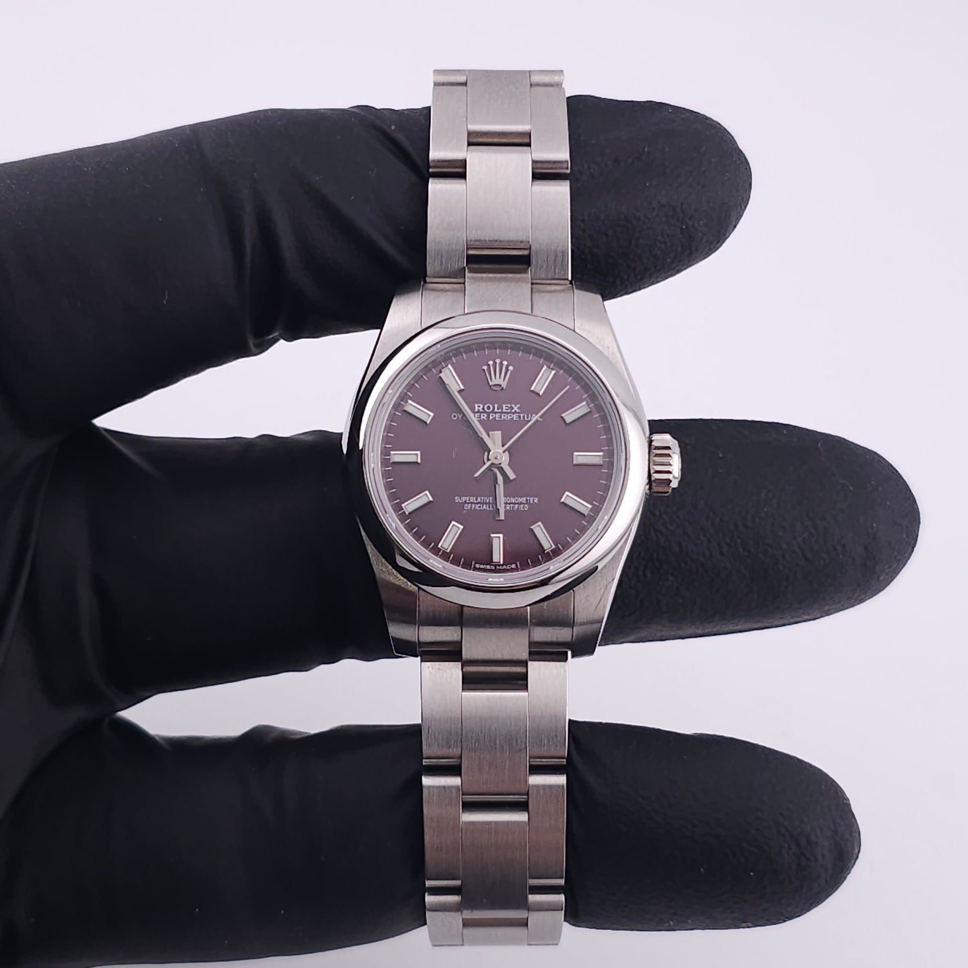 Dial: Red Grape With White and Steel Stick Markers