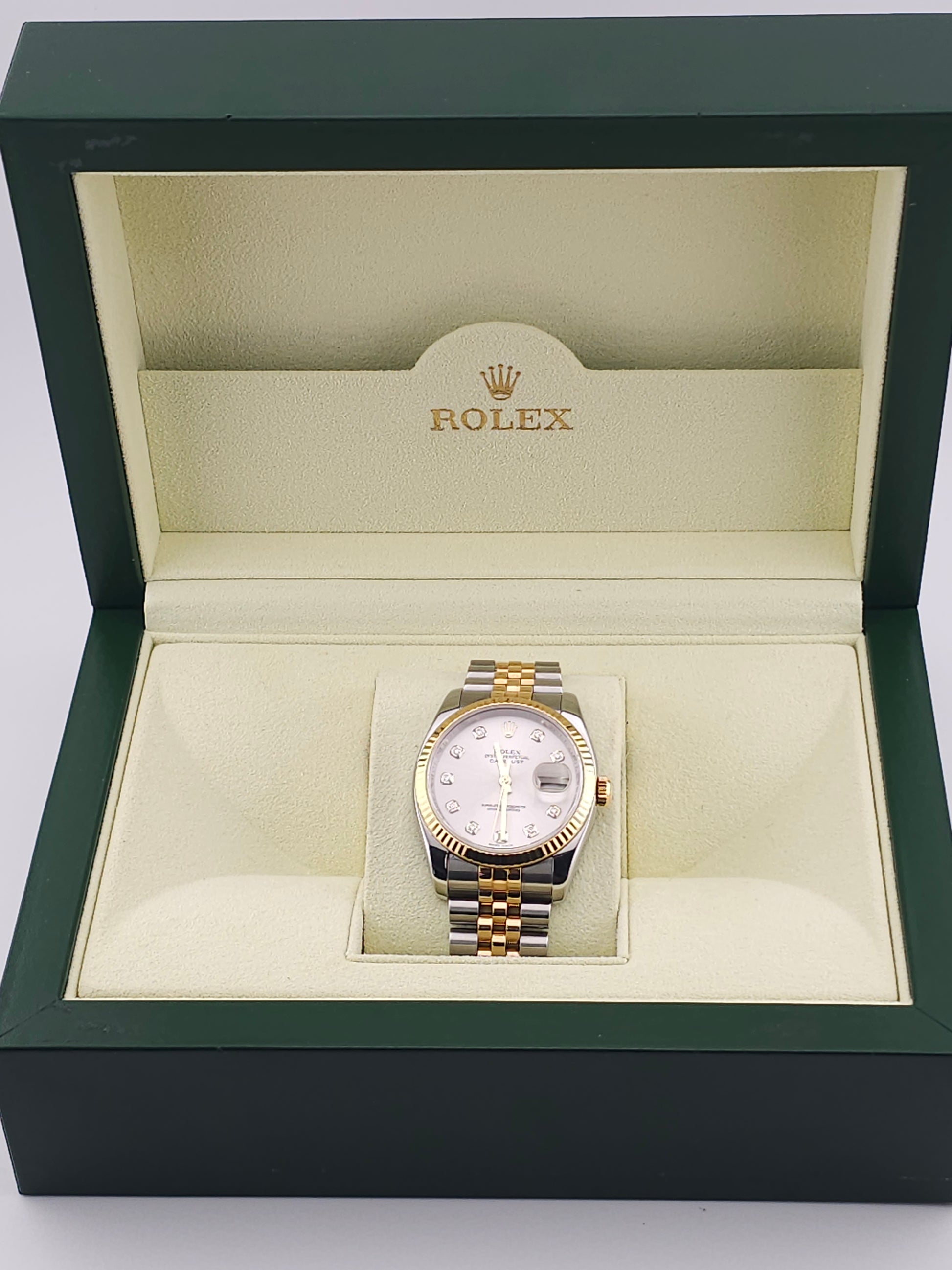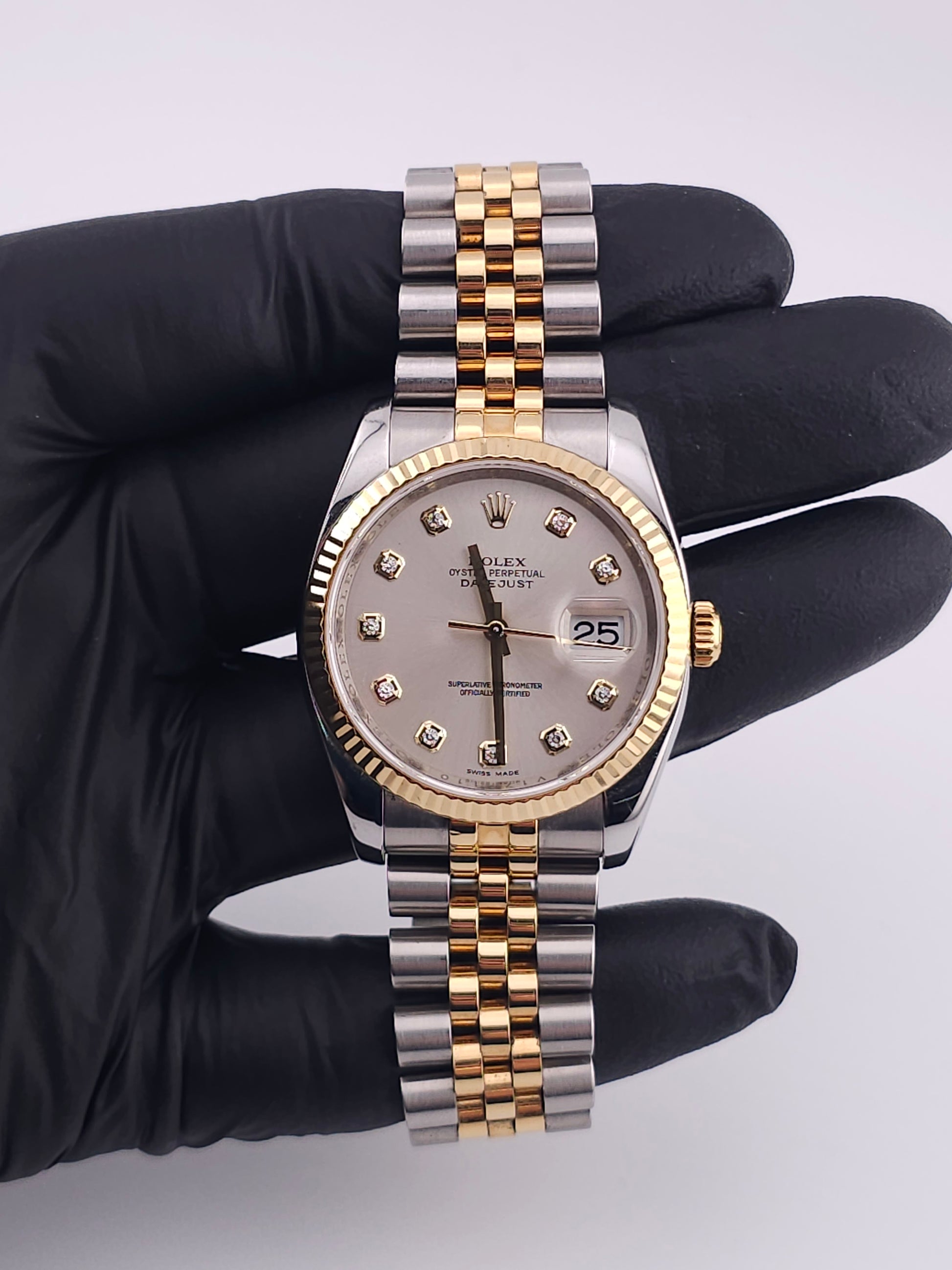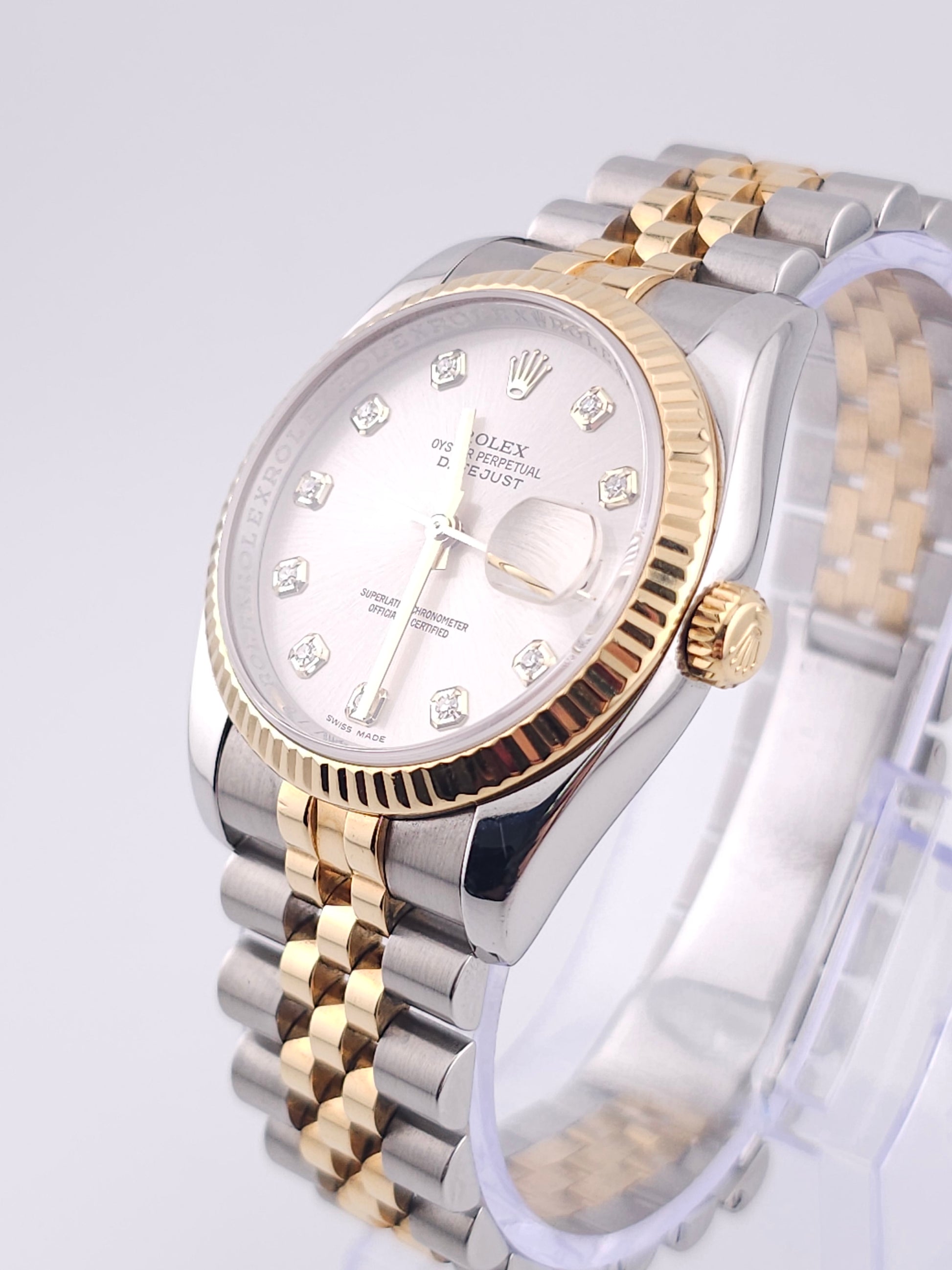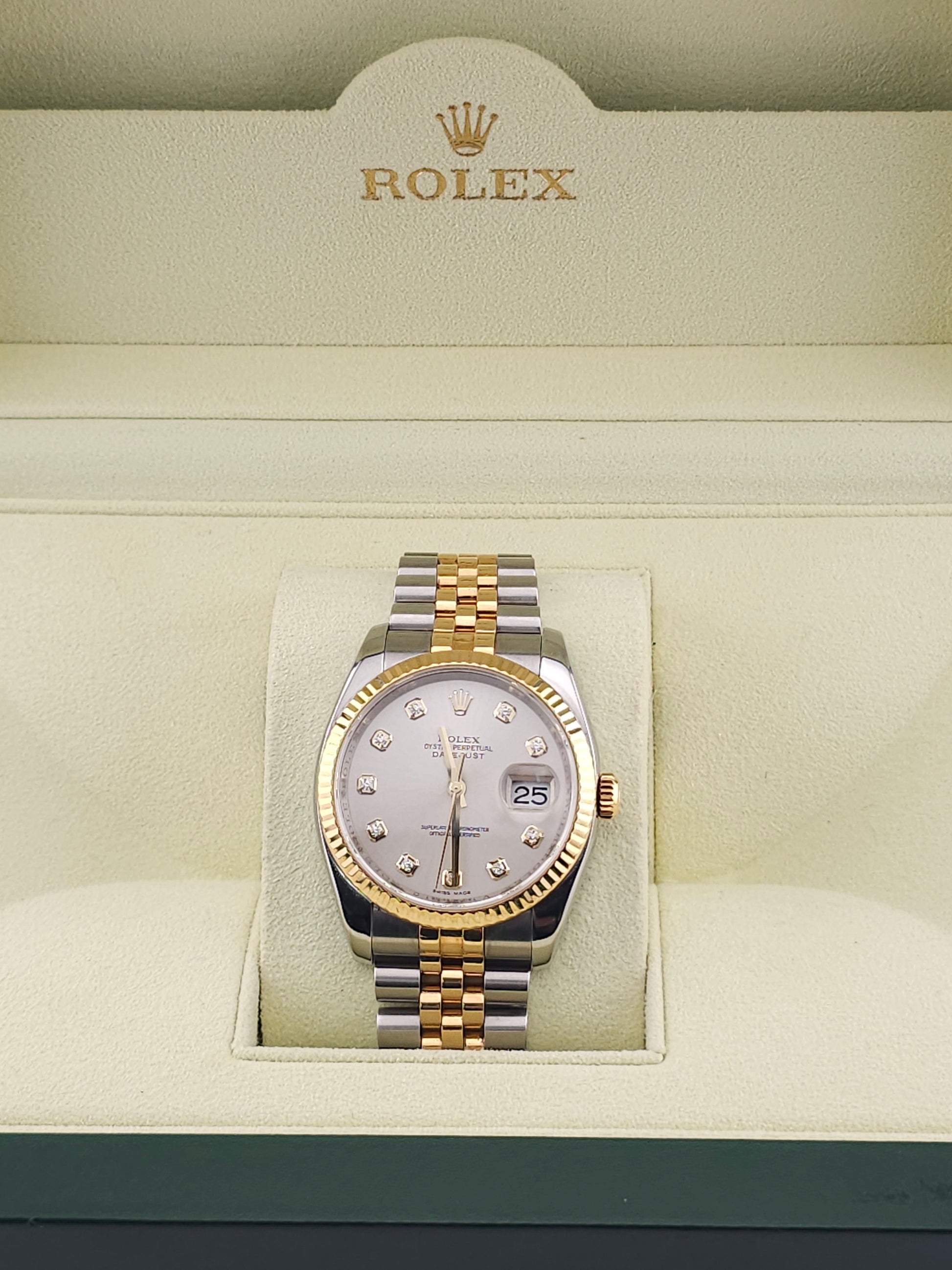 Dial: Silver Dial With Yellow Gold and Diamond Markers